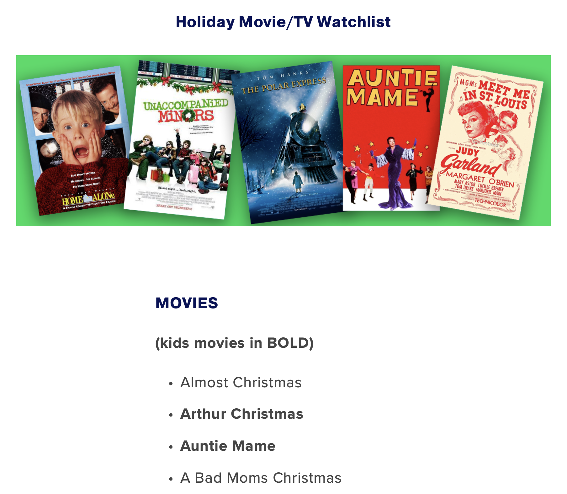 Yes I am late to the game this year. This post was sitting as a draft waiting for me to update the list by omitting our personal traditions and just make this a list of reference for many. Every year I do get friends and family asking the best holiday movies to watch. A new feature of this list is that I am finally sorting adult movies and kid appropriate movies. Also I am adding a separate list of holiday episodes from television.
