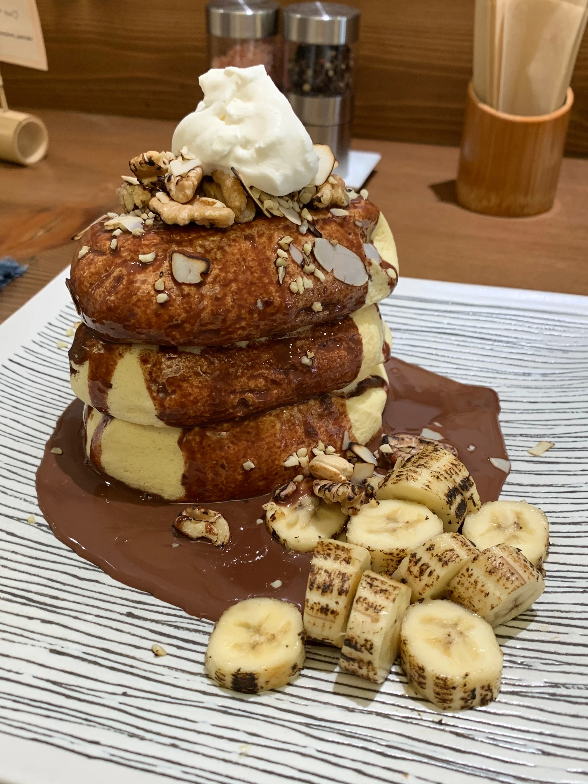 Paley help me edit the video for the pancakes. I will admit, I was still hungry and ordered two waffle as added bonus. Oddly the waffle is not on the menu but I saw one of the assistants making a set for commercial crew to shoot. Somewhere there is going to be an ad or promo for the restaurant and this LGBT family will be in the background. If you happen across it, please let me know. Later that day I went back to Harijuku to do shopping with Paley and the later that night we finally went to a sushi boat restaurant for dinner. We were so stuff at the ed of the night and our little stack, was more like a tower.
