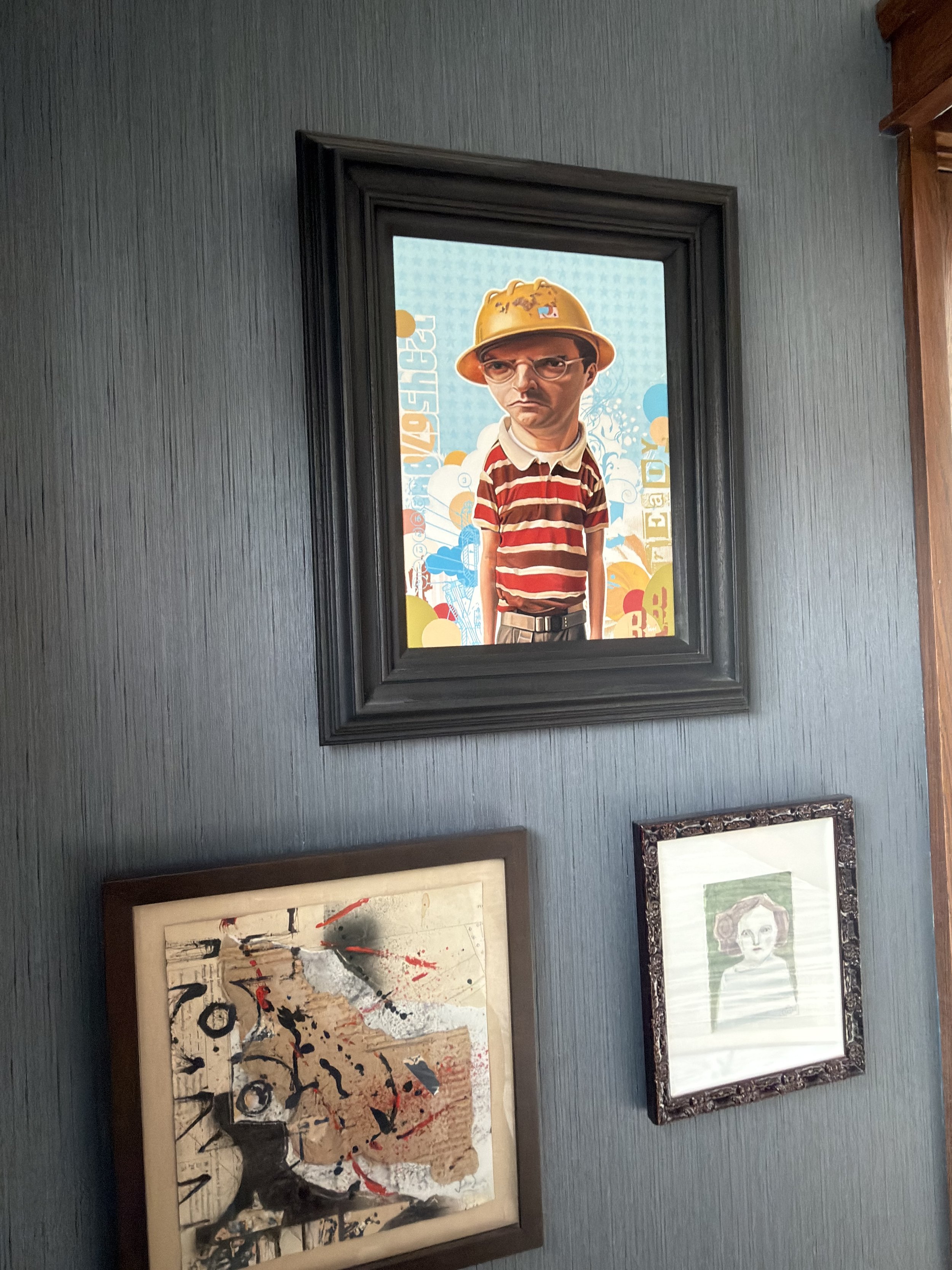 For over a decade Buster has stared at us sleeping. He took a two year break but has returned once again to being our guardian angle during our slumber. I’ve heard it all about this painting. I am well aware some family and friends are freaked out about certain pieces in the collection, and poor buster is one of them. I don’t care. I still love him, just as much as the dead kids in my Katrina painting by Serge Gay Jr. With Buster back where he belonged. I wondered what has the artist been up to lately.