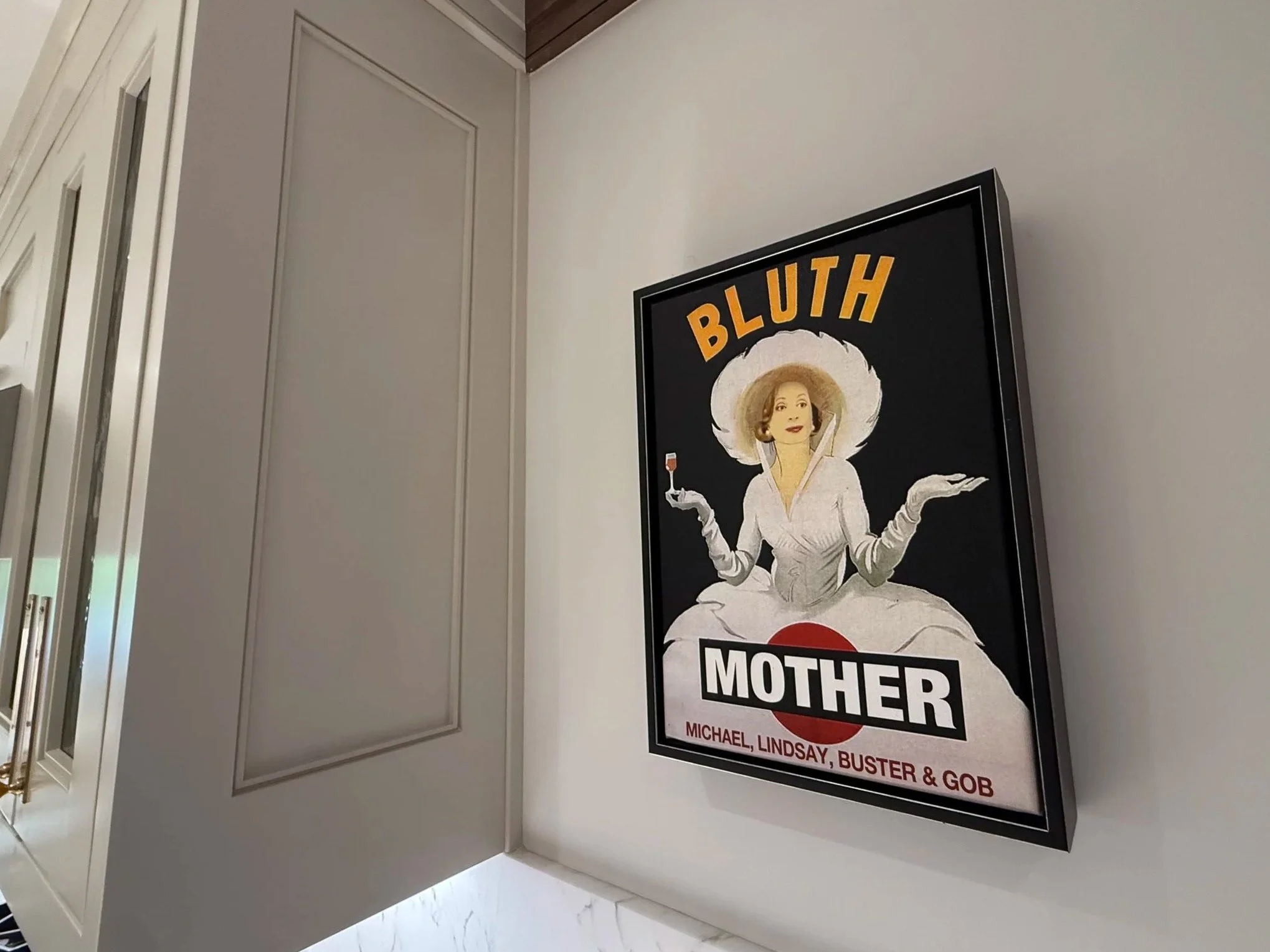 With Mother Bluth back where she belongs at HK5corner, I am still itching to find out what happened to Luke Lombardo. My hope is to figure out a way to reach out to him and see how he is doing and to share how much I love this wonderful conversation starter. Having the amazing Lucille looking over me in the kitchen while I cook every day, is comforting. I did manage to reach out to one author/tech crunch guru, who was gifted one of Lombardo’s painting back in 2012. My hope is I get a response with a possible email address for Luke. Finger crossed. For now, lets just raise our glass to the amazing Mother Bluth.